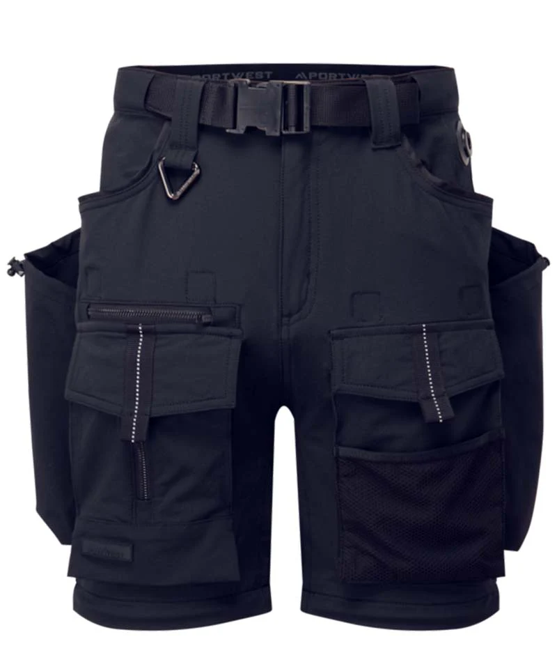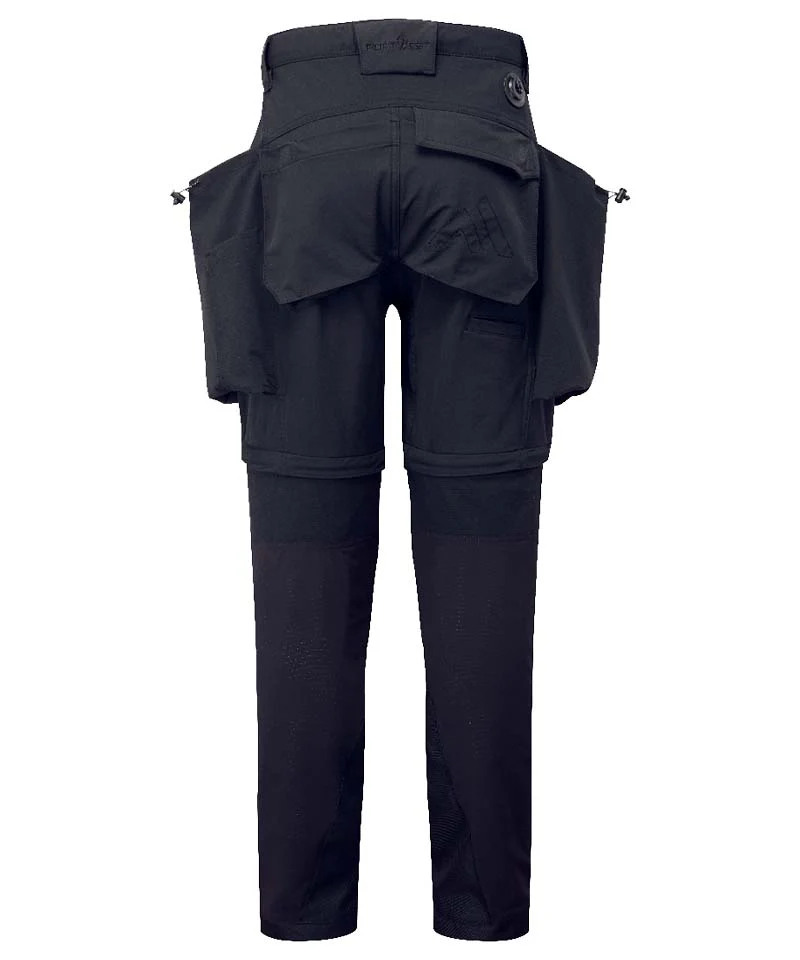 De Portwest BX321 3-in-1 werkbroek is gemaakt voor vakmensen die flexibiliteit en functionaliteit nodig hebben. De broek bestaat uit 87% nylon en 13% elastaan en biedt dankzij 4-way stretch maximale bewegingsvrijheid. De slim fit pasvorm zit comfortabel en de verstelbare tailleband zorgt voor een goede aansluiting bij iedere klus.