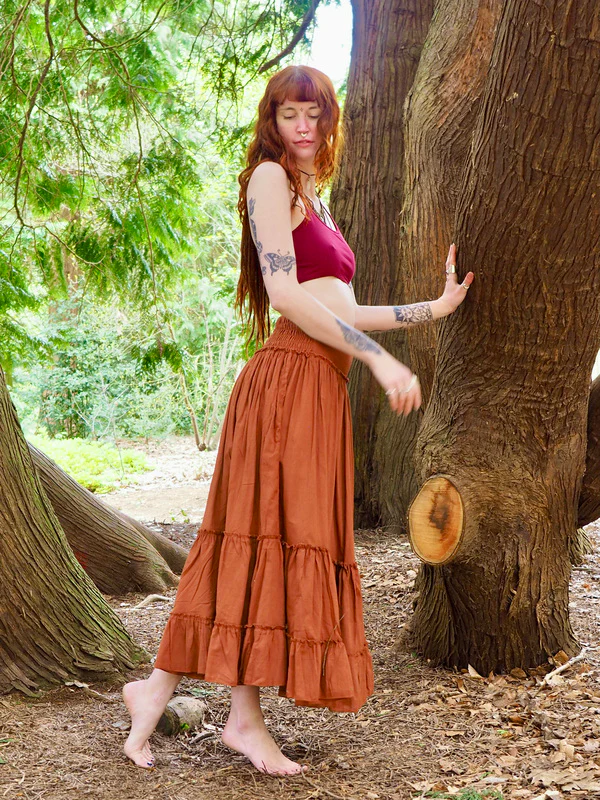 Deze prachtige rok is gemaakt van heerlijk zachte katoen en heeft een elegante, wijd uitlopende vorm. Perfect voor zowel zomerse als winterse dagen. De speelse lagen geven de rok een feestelijke Ibiza-look, waarmee je moeiteloos elke outfit een bohemian touch geeft!