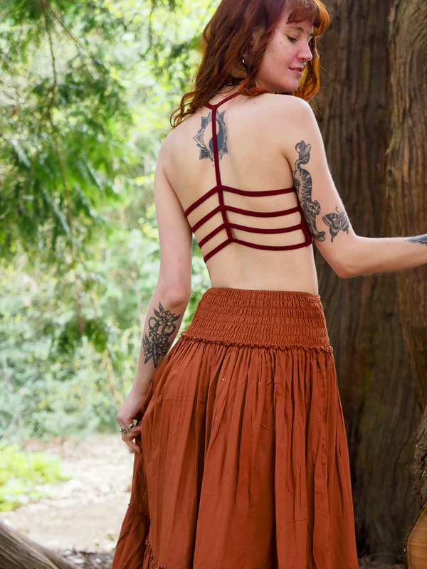 Wat deze rok zo bijzonder maakt, is dat je zelf kunt bepalen hoe je hem draagt. Draag hem bijvoorbeeld op de heupen in combinatie met onze Aphrodite Boho top of juist in de taille met onze Devi off shoulder. Wat je ook kiest, deze creatieve rok blijft je verrassen en is altijd een eyecatcher.