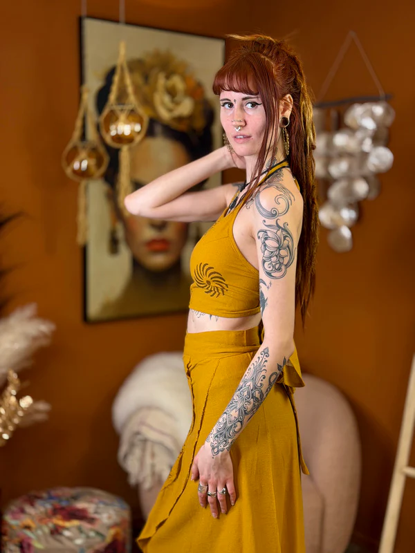 De Aya Zomertop is dé ultieme bohemian festival top met pure zomerse vibes. Deze luchtige top met handgedrukte Aztec print is perfect voor festivals, stranddagen of gewoon om je vrij en zelfverzekerd te voelen. Combineer met de bijpassende Mystic Mesa Rok of mix en match met andere items uit onze Nomad Chic collectie.