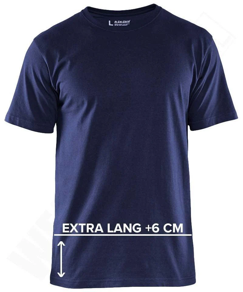 Fan van het merk Blaklader en op zoek naar een extra lang t-shirt met een normale pasvorm? Dan zit je hier goed! Dit comfortabele extra lange t-shirt met ronde hals is van 100% katoen en beschikt over versterkte nek- en schoudernaden. Dankzij de 6 cm extra lengte aan de onderkant is het hebben van een koude rug tijdens het bukken of tillen verleden tijd. Nooit meer last van t-shirts die uit je broek kruipen!