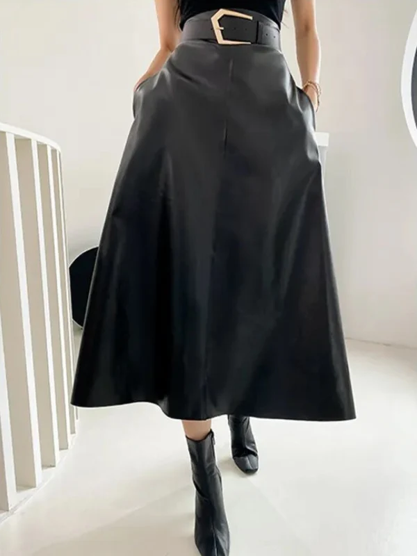 Dames Hoge Taille Midi Rok met Riem