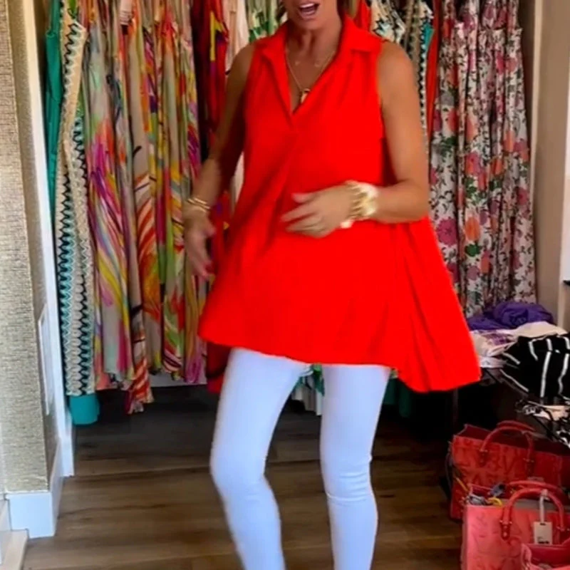 Mouwloze top voor dames met ruches en revers