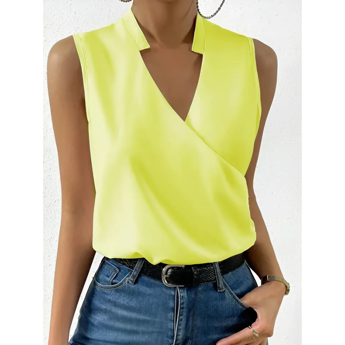 - Type: Mouwloze V-hals top voor dames.
