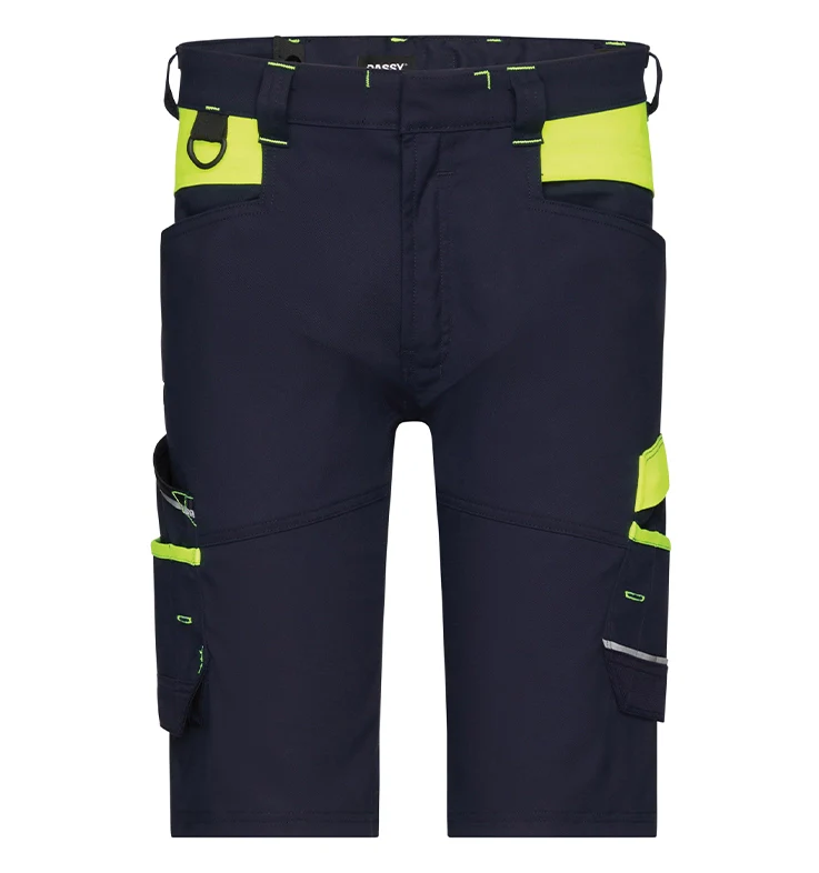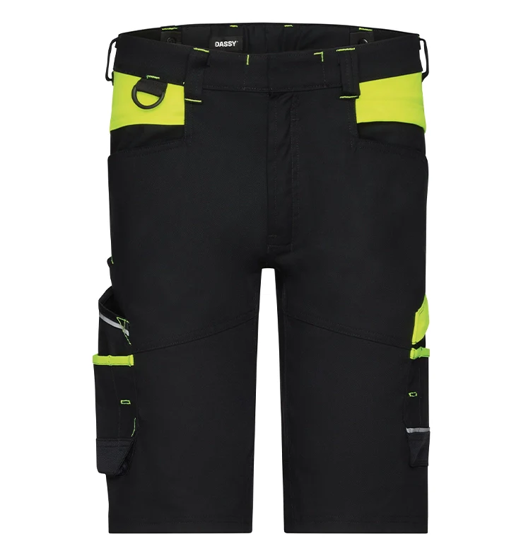 De reflecterende bies op de dijbeenzakken en de fluo trenzen zorgen voor extra zichtbaarheid. Ideaal voor timmermannen, installateurs, monteurs, hoveniers en magazijnmedewerkers die in de zomer een stevige werkshort zoeken met veel zakken.