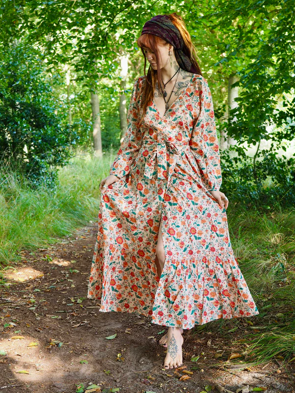 De Devi Dress is er in verschillende stoffen en prints, zodat er altijd eentje is die bij je past. Of je nu gaat voor een opvallende look of een meer ingetogen vibe, deze katoenen jurk doet het allemaal.
