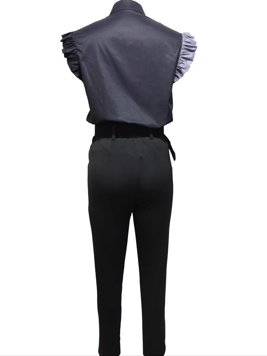 Verken je stijl met de prachtige Ruffle-Mouwen Set, een twee-delig ensemble dat moeiteloos de balans tussen verfijning en hedendaagse flair weet te vinden. Dit veelzijdige outfit is een essentiële aanvulling voor elke modebewuste garderobe, perfect voor zowel formele als casual gelegenheden.