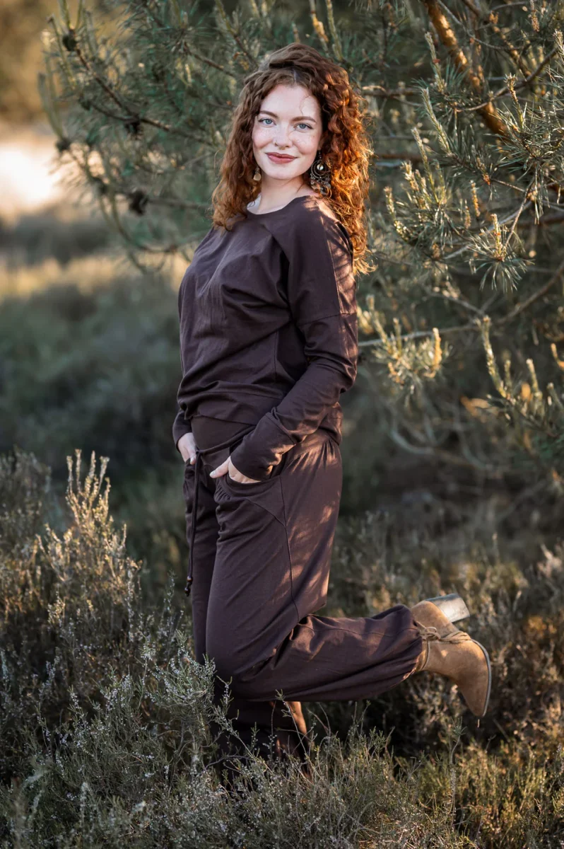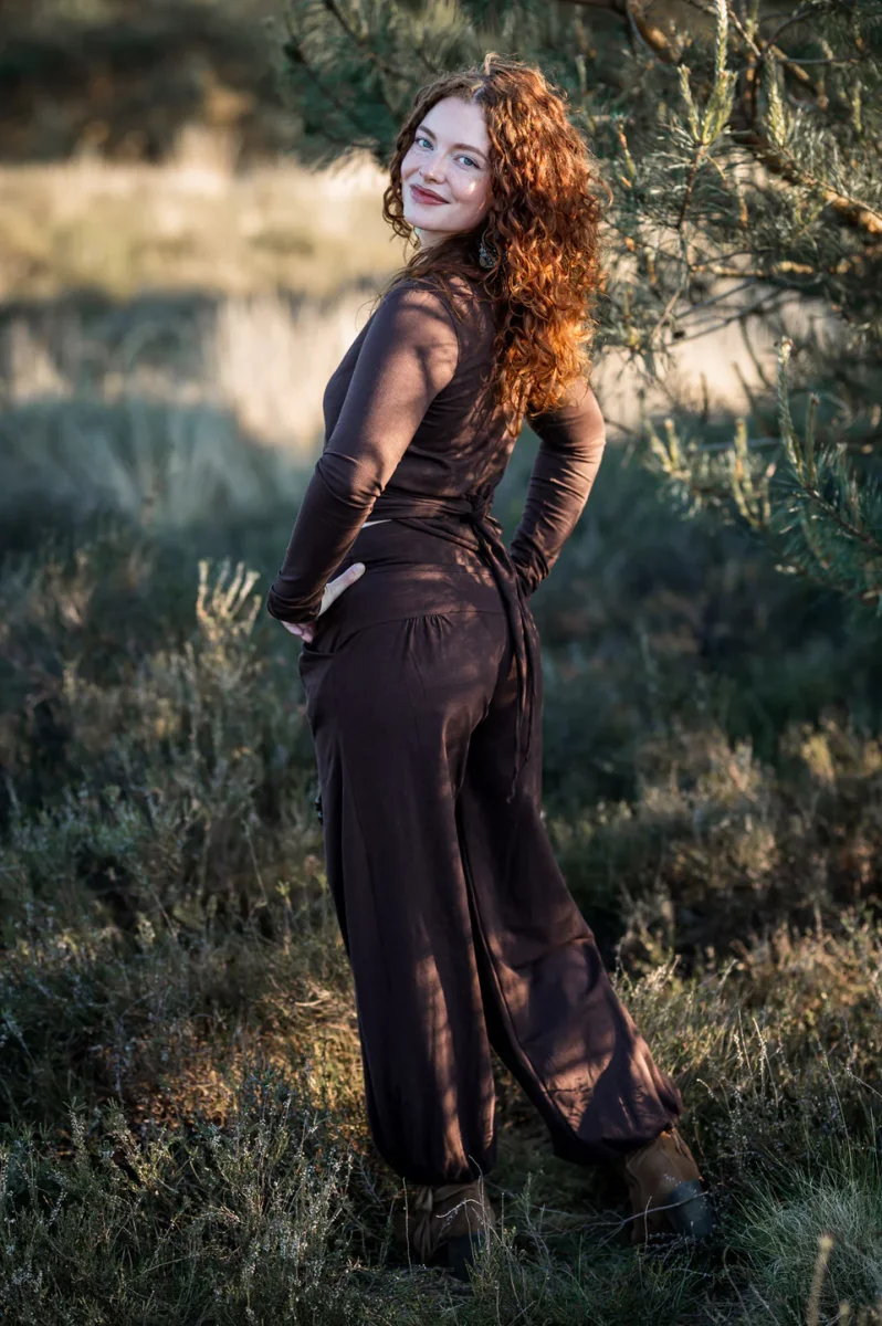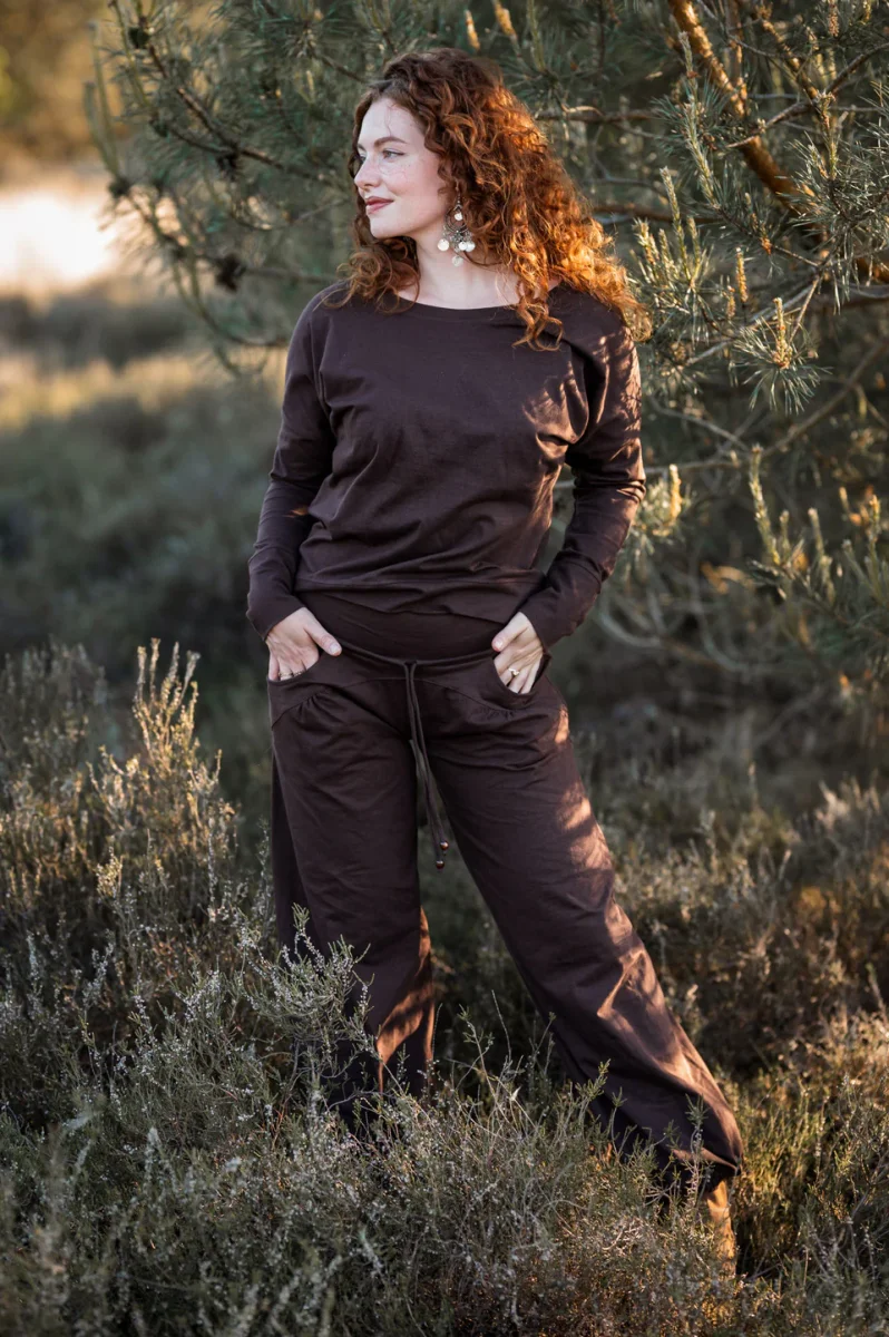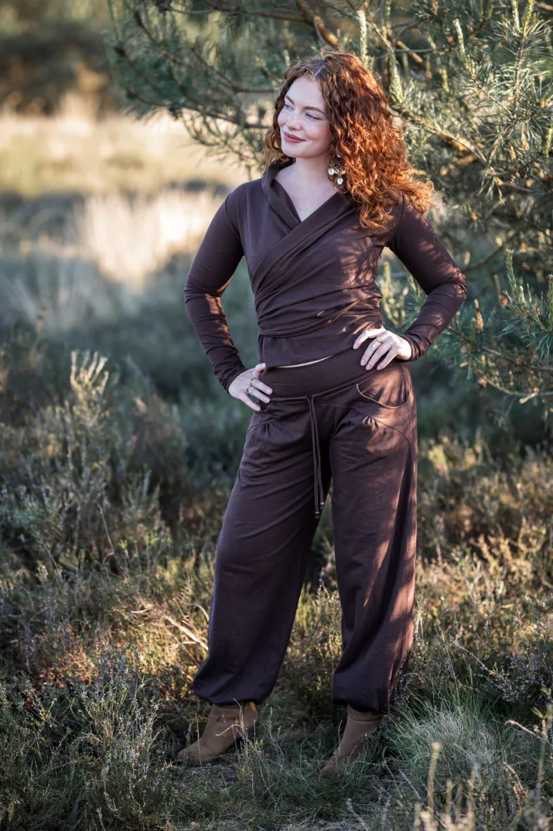 Deze Flow pant lieve vrouw is echt een geweldige pant. We hebben maanden werk gehad in ons atelier om een yoga pant, of huispak te maken die én super comfortabel zit en ook nog eens een super vrouwelijke uitstraling heeft.