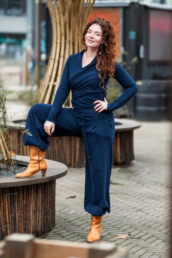Deze Flow pant lieve vrouw is echt een geweldige pant. We hebben maanden werk gehad in ons atelier om een yoga pant, of huispak te maken die én super comfortabel zit en ook nog eens een super vrouwelijke uitstraling heeft.