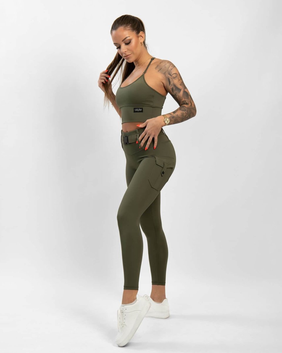 Stoere en stijlvolle Cargo legging met een perfecte pasvorm, in een militair groene kleur.