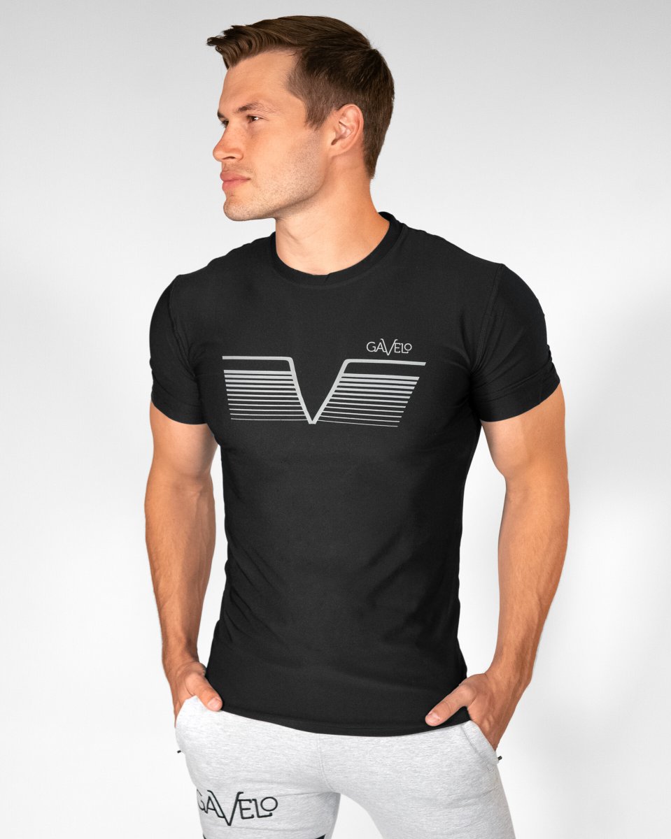 Dit is echt een heel mooi heren sport t-shirt! De stof is soepel en elastisch, het logo op de voorkant laat je borts (nog) breder lijken, ook de achterkant heeft mooie lijnen die je figuur goed doet uitkomen.