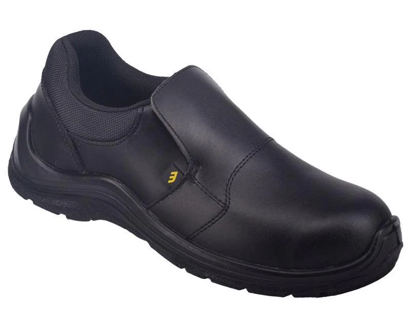 - Leren instap werkschoen met elastische band, snel aan en uit te trekken