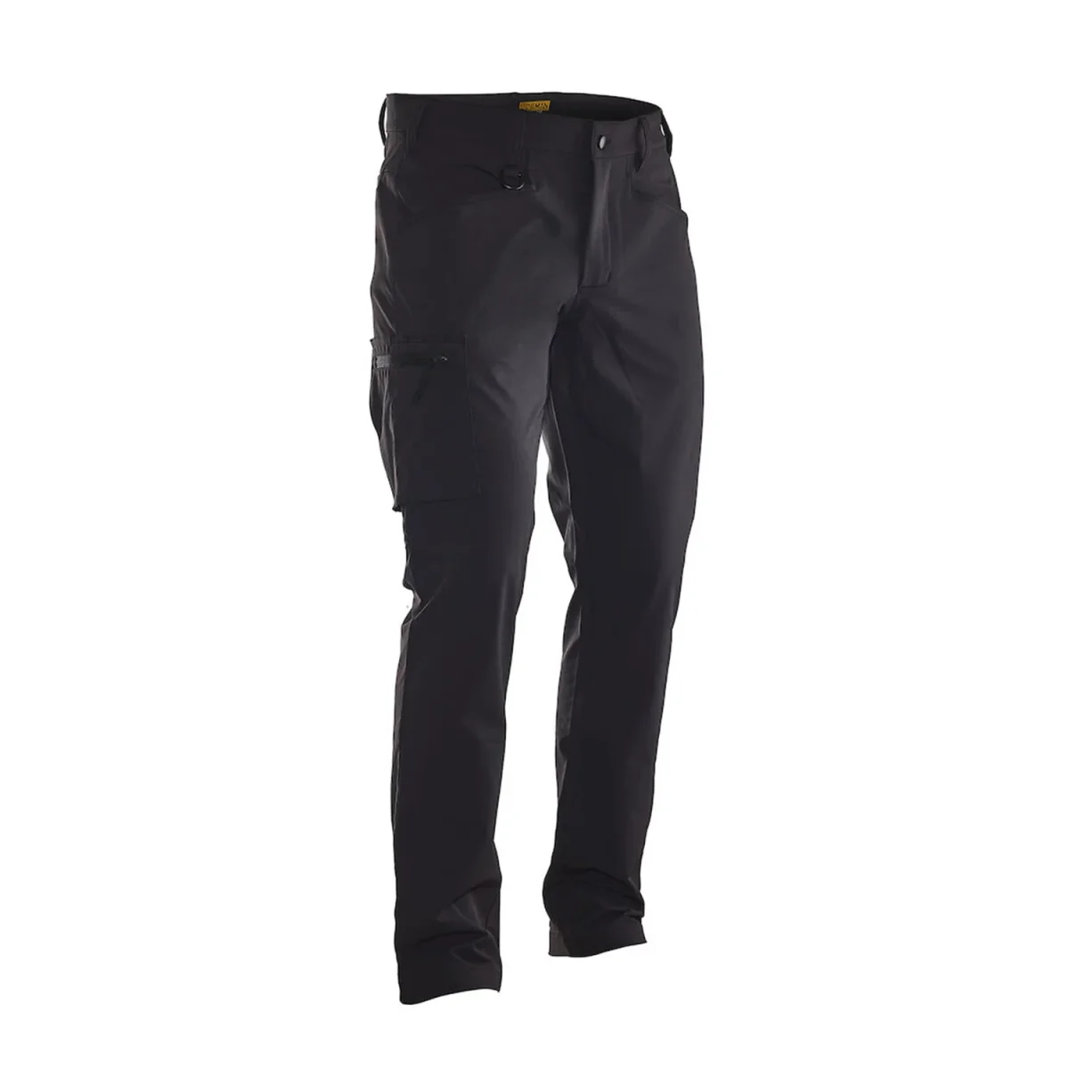 Servicebroek van comfortabele 4-way stretch van polyamide/elastaan met een slanke pasvorm. De servicebroek is voorzien van voldoende opbergruimte. Een ruime zak aan de voorzijde, paspelzakken aan de achterzijde en een zak op het been met ritssluiting voorzien van extra vakken voor o.a. een mobiel en pennen.