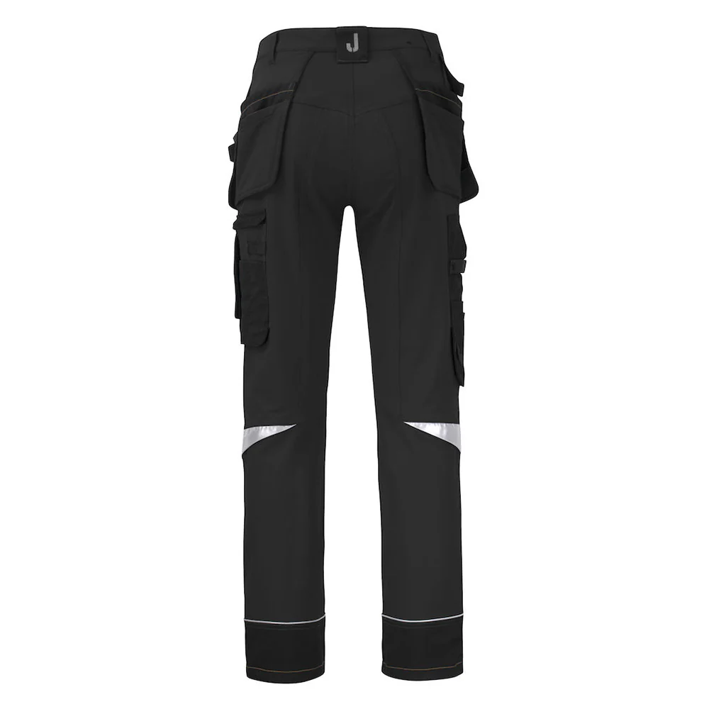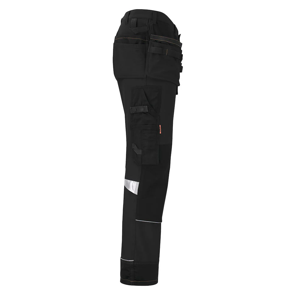 Geavanceerde broek in een zeer hoogwaardige en comfortabele 4-way stretch Ripstop kwaliteit gecombineerd met zeer slijtvaste polyamide en Cordura® versteviging voor extra duurzaamheid. De broek is voorzien van diverse zakken, zoals een duimstokzak met mes-bevestigingsknoop, ruime verstevigde holsterzakken, deels loshangende achterzakken en een zak op het been met rits, telefoonvakje en ruimte voor een ID-kaart. Verder is de broek professioneel afgewerkt met een hamerlus, extra riemlussen bij de grote maten, siliconen in de band om het shirt op zijn plek te houden en reflecterend tape. De kniestukken kunnen op twee hoogtes worden geplaatst om de beste positie voor optimale bescherming te kunnen garanderen. De voorgevormde knieën en mesh in de knieholtes zorgen voor een optimaal draagcomfort.