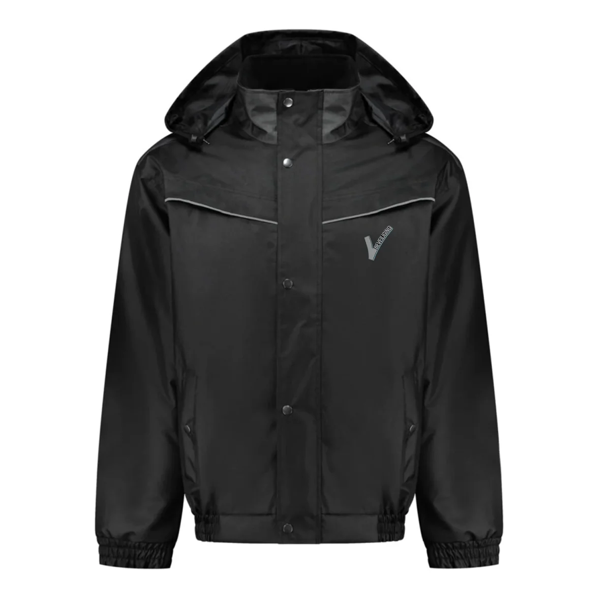 De jas is uitgerust met een vaste capuchon die oprolbaar is in de kraag, een zachte fleece kraag en een ritssluiting met drukknoopsluiting voor optimale bescherming tegen regen en wind.