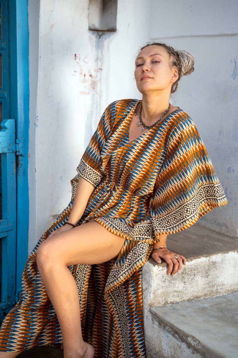 Lange Kaftan van Blockprint Katoen – Bohemian & Comfortabel
