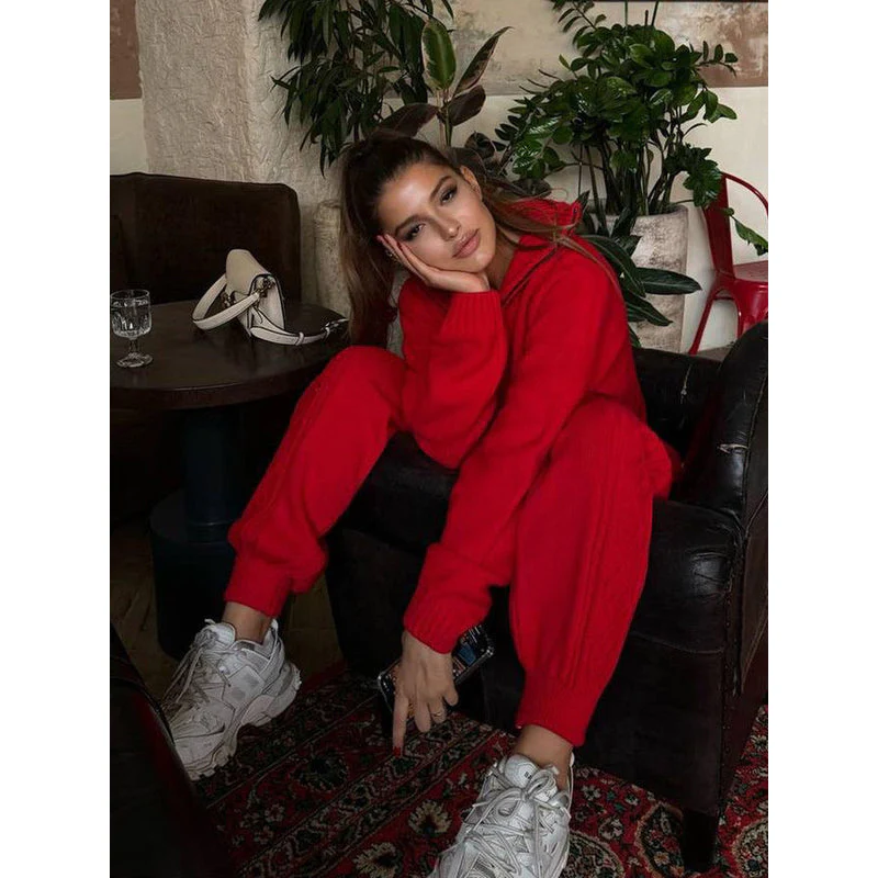 Ontdek onze dames loungewear anzug, die perfect comfort en stijl combineert. Gemaakt van hoogwaardig, zacht strickmateriaal, biedt deze anzug een heerlijk warm draaggevoel, ideaal voor ontspannen dagen thuis of gezellige avonden.