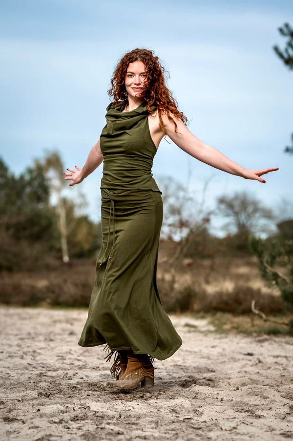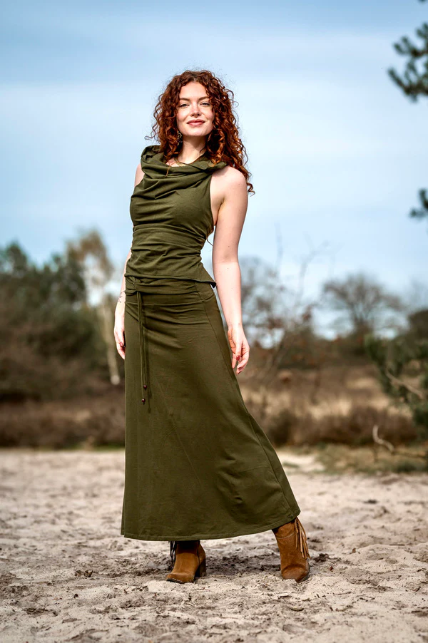 De flatterende A-lijn en lange lengte maken de Luna rok niet alleen comfortabel, maar ook veelzijdig. Perfect voor een wandeling door de stad, een ontspannen dag thuis, of een avondje uit.