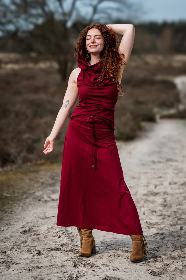 De flatterende A-lijn en lange lengte maken de Luna rok niet alleen comfortabel, maar ook veelzijdig. Perfect voor een wandeling door de stad, een ontspannen dag thuis, of een avondje uit.
