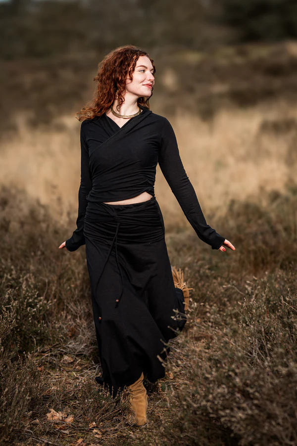 De flatterende A-lijn en lange lengte maken de Luna rok niet alleen comfortabel, maar ook veelzijdig. Perfect voor een wandeling door de stad, een ontspannen dag thuis, of een avondje uit.