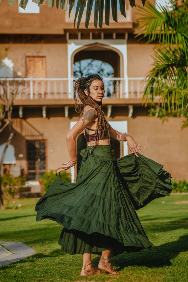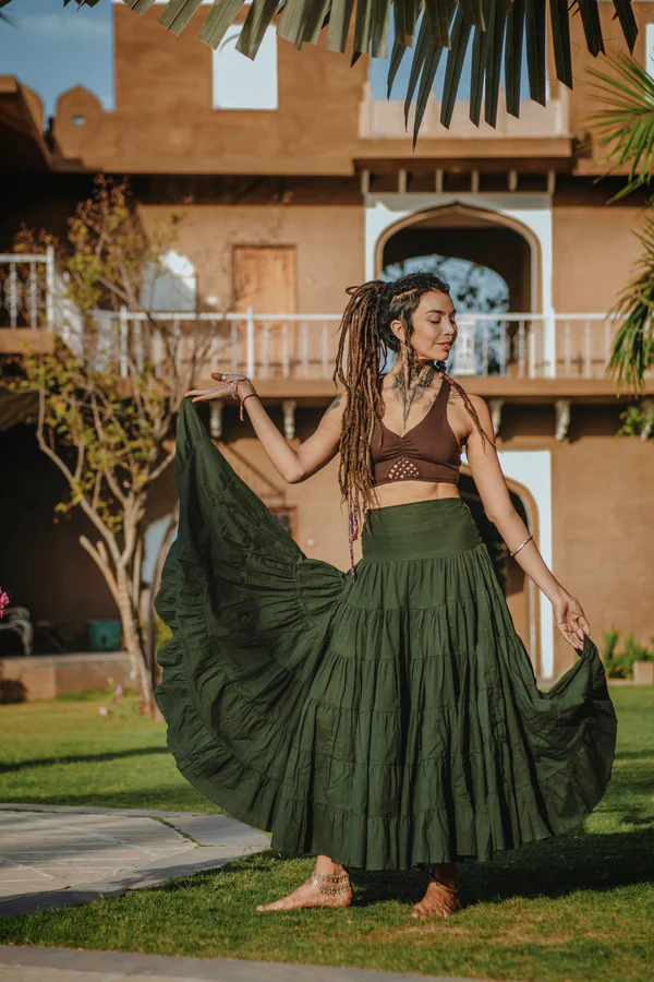 Dwalen, dromen en dansen, deze waanzinnig mooie rok is een waarachtig sprookje. Als jij op zoek bent naar een betoverende rok die jouw fantasie tot leven brengt, dan ben je bij ons aan het juiste adres. Onze prachtige rok is gemaakt van 10 meter zachte katoenen stof die zorgt voor een weelderige hoeveelheid volume en schoonheid.