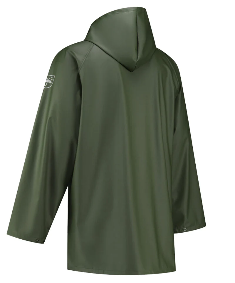 Deze regenjas is gemaakt van polyester met een sterke polyurethaan coating waardoor de jas volledig waterdicht is en toch soepel blijft. Dit zorgt ervoor dat je je vrij kunt blijven bewegen bij je werkzaamheden. De gelaste naden voorkomen dat er vocht binnendringt, zelfs bij langdurige regen. De drukknoopsluiting met stormflap houdt wind buiten en de verstelbare capuchon biedt extra bescherming wanneer het weer omslaat. Dankzij de drukknopen bij de mouwen sluit de jas goed aan en blijft je onderkleding droog. Deze waterdichte werkjas heeft twee praktische steekzakken en is ideaal voor regenachtige en winderige dagen, of in omgevingen met veel water.