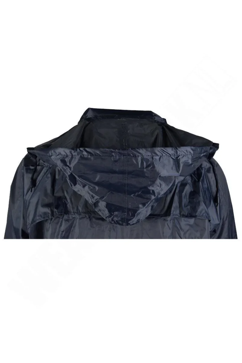 Dit PVC regenpak in de kleur blauw is gemaakt van 100% polyester. De set bestaat uit een regenjas en regenbroek, maar deze kun je uiteraard ook los van elkaar dragen. Het pak heeft twee voorzakken met een flap, waardoor de spullen die je hierin opbergt niet nat zullen worden. Ook beschikt het pak over ventilatie in de onderarm en een capuchon in de kraag die je ook weg kunt stoppen. De regenbroek heeft elastiek in de taille en drukknopen bij de enkels, waardoor je de regenbroek wat wijder/smaller kunt maken naar jouw wens.