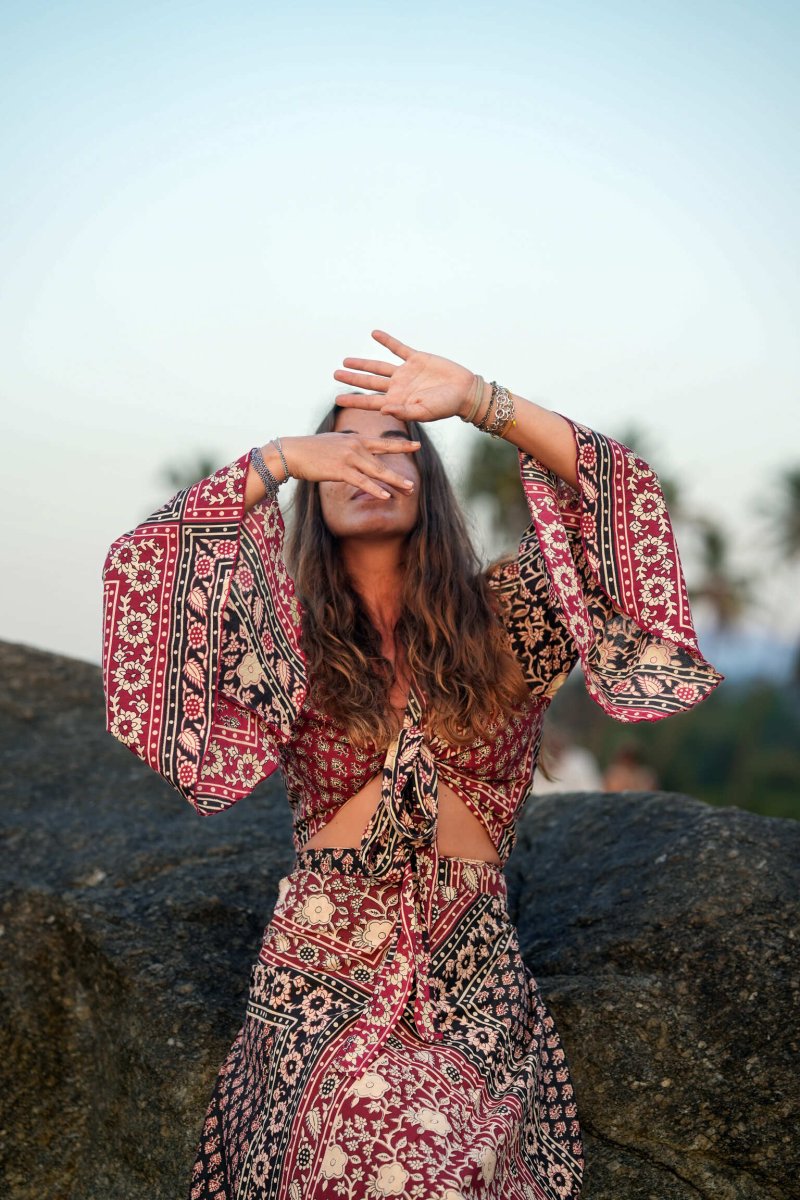 Binnen de Sacred Roots print vind je meerdere items die perfect bij elkaar passen. De tops kun hier vinden!