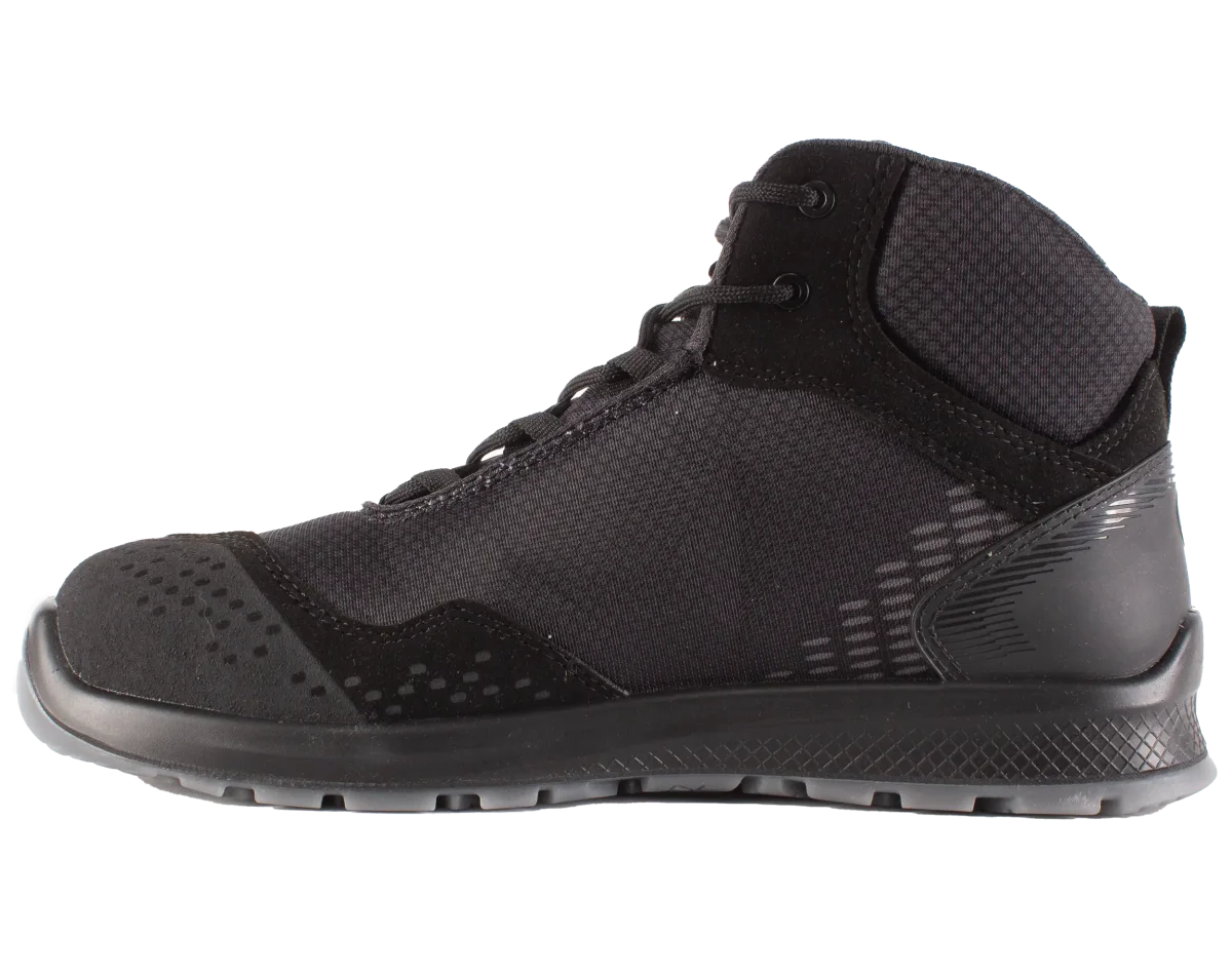 Deze sportieve S3 werkschoenen van Sixton zijn gemaakt van sterk en ademend microfiber, suede delen, en TPU versterkingen bij de neus en hak. Dit hoge model geeft je extra ondersteuning en bescherming bij de enkels. De aluminium veiligheidsneus beschermt je tenen tegen vallende objecten, terwijl de metaalvrije antiperforatiezool voorkomt dat scherpe materialen de zool binnendringen zonder dat de schoen zijn flexibiliteit verliest.