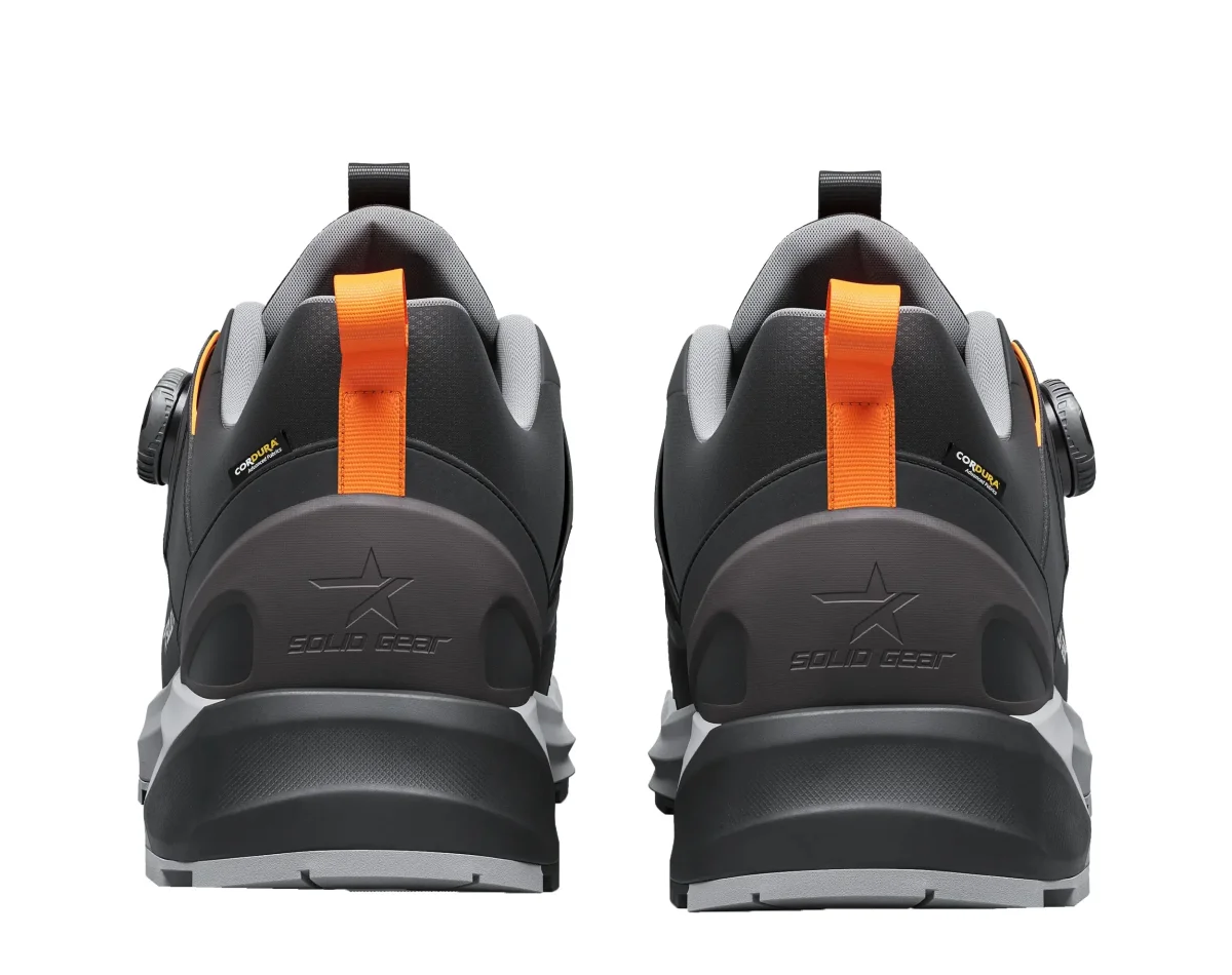 Deze sportieve werkschoenen van Solid Gear zijn gemaakt van een slijtvast CORDURA® en microvezel bovenwerk dat licht aanvoelt en bestand is tegen intensief gebruik. Dit materiaal is waterafstotend en ademend, waardoor je voeten droog en comfortabel blijven tijdens lange werkdagen. De brede leest geeft extra ruimte aan de voorvoet en voorkomt knellen bij veel lopen of staan. Dankzij het BOA® Fit System met wrap-technologie sluit de schoen gelijkmatig rondom de voet en stel je de pasvorm snel en nauwkeurig af zonder gedoe met veters.
