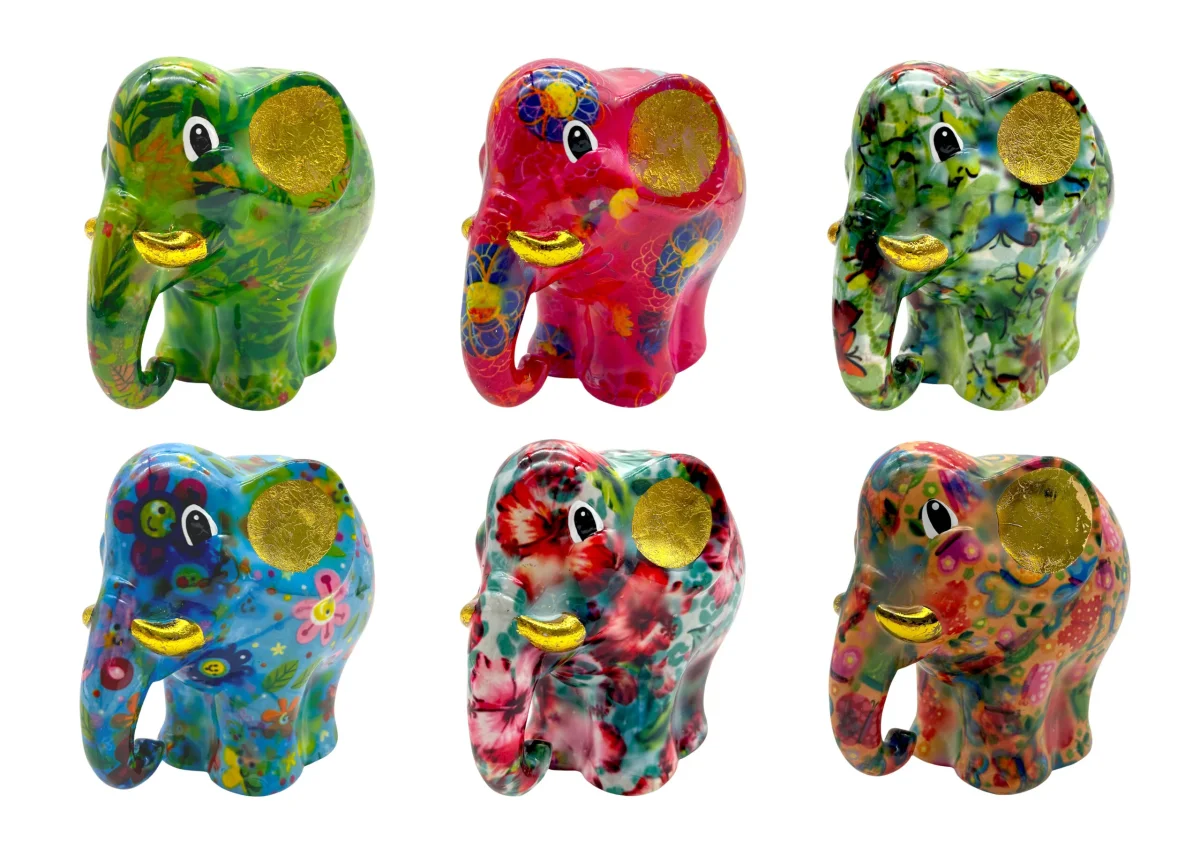 Bewaar je spaargeld in stijl met deze kleurrijke spaarpot van Pomme Pidou! Olifant Elton is vrolijk, glanzend en komt in diverse sprankelende prints β allemaal afgewerkt met gouden details aan de oren en slurf. Perfect als eyecatcher in huis of als origineel cadeau.