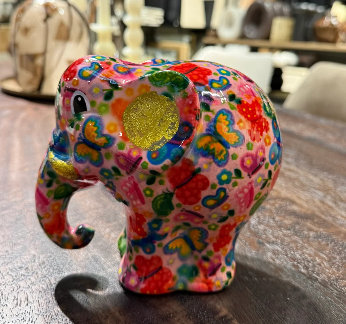 Deze keramieken spaarolifant is handbeschilderd en voorzien van een rubberen dop aan de onderkant. Kies je favoriete print en geef je interieur een vrolijke touch!