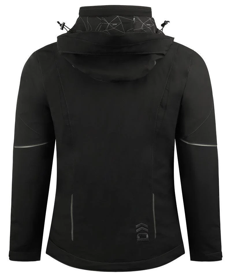 Dankzij het waterdichte membraan, de getapete naden en de waterafstotende coating blijft regen buiten terwijl vocht aan de binnenkant kan ontsnappen. De afneembare capuchon, voorgevormde mouwen, verstelbare taille en polsbanden zorgen ervoor dat de jas eenvoudig passend te maken is. Je hebt genoeg opbergruimte dankzij de afsluitbare steekzakken, ritszak op de mouw, twee binnenzakken, potloodzak en een telefoonvak met 3D mesh stootbescherming. De verlengde rug en reflecterende details zorgen voor extra bescherming en zichtbaarheid op donkere dagen.