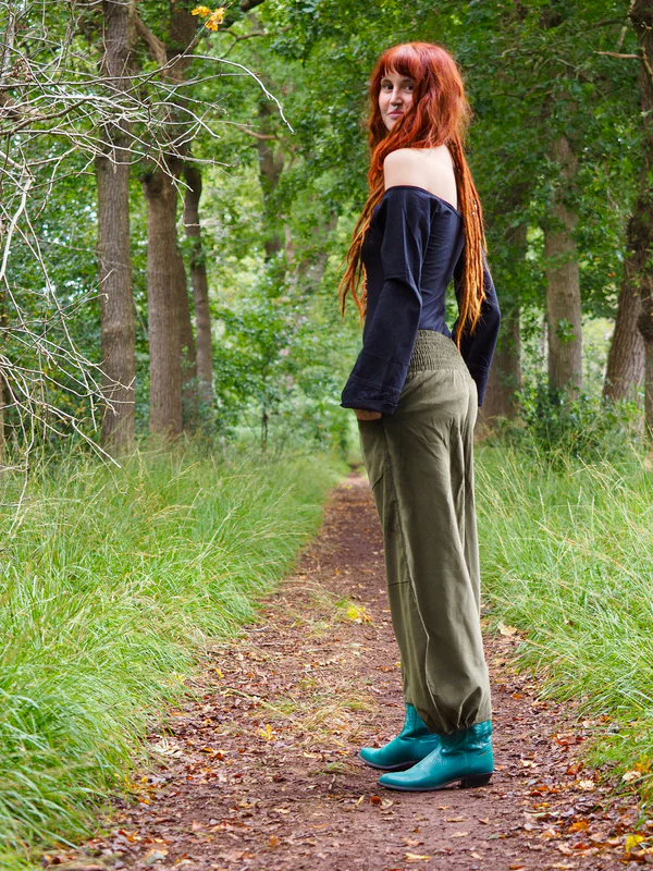 Het is een heerlijk loszittende broek die bij de enkels door middel van een loszittend elastiek weer aansluit. Hij is super comfortabel en dus echt perfect om lekker in te dansen of juist te loungen!