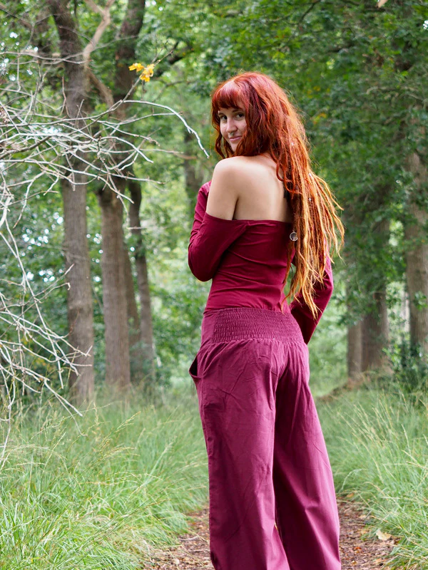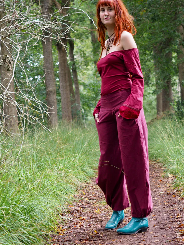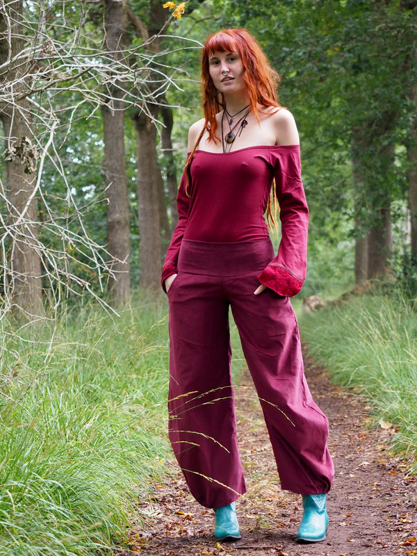 Uma Broek Rib Marroon Rood