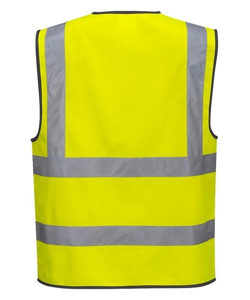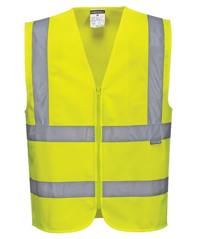 Met dit gele veiligheidshesje van Portwest hoef je niet bang te zijn dat je niet op zult vallen! Het hesje is namelijk voorzien van reflecterende strepen, waardoor je zowel overdag als bij minder licht goed zichtbaar bent. Daarnaast is dit veiligheidshesje voorzien van een rits, zodat je deze super gemakkelijk aan- en uit kunt trekken. Het hesje is ook licht van gewicht (100% polyester), voldoet aan de EN ISO 20471-certificering en bevindt zich in de tweede klasse als het gaat om zichtbaarheid.