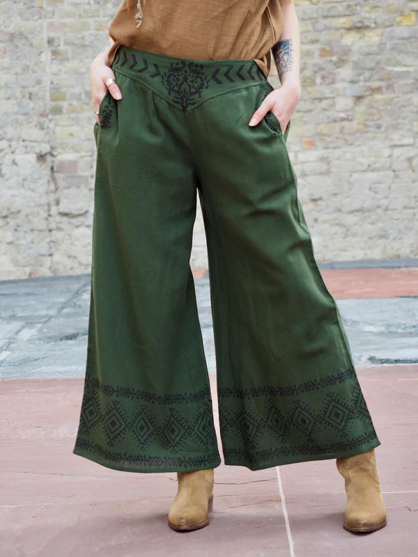 Deze broek is ontworpen met oog voor comfort én stijl. De bijzondere Aztec print (met de hand gezet) langs de boord in de taille, bij de steekzakken en onder aan de boord maken deze broek uitzonderlijk bijzonder!